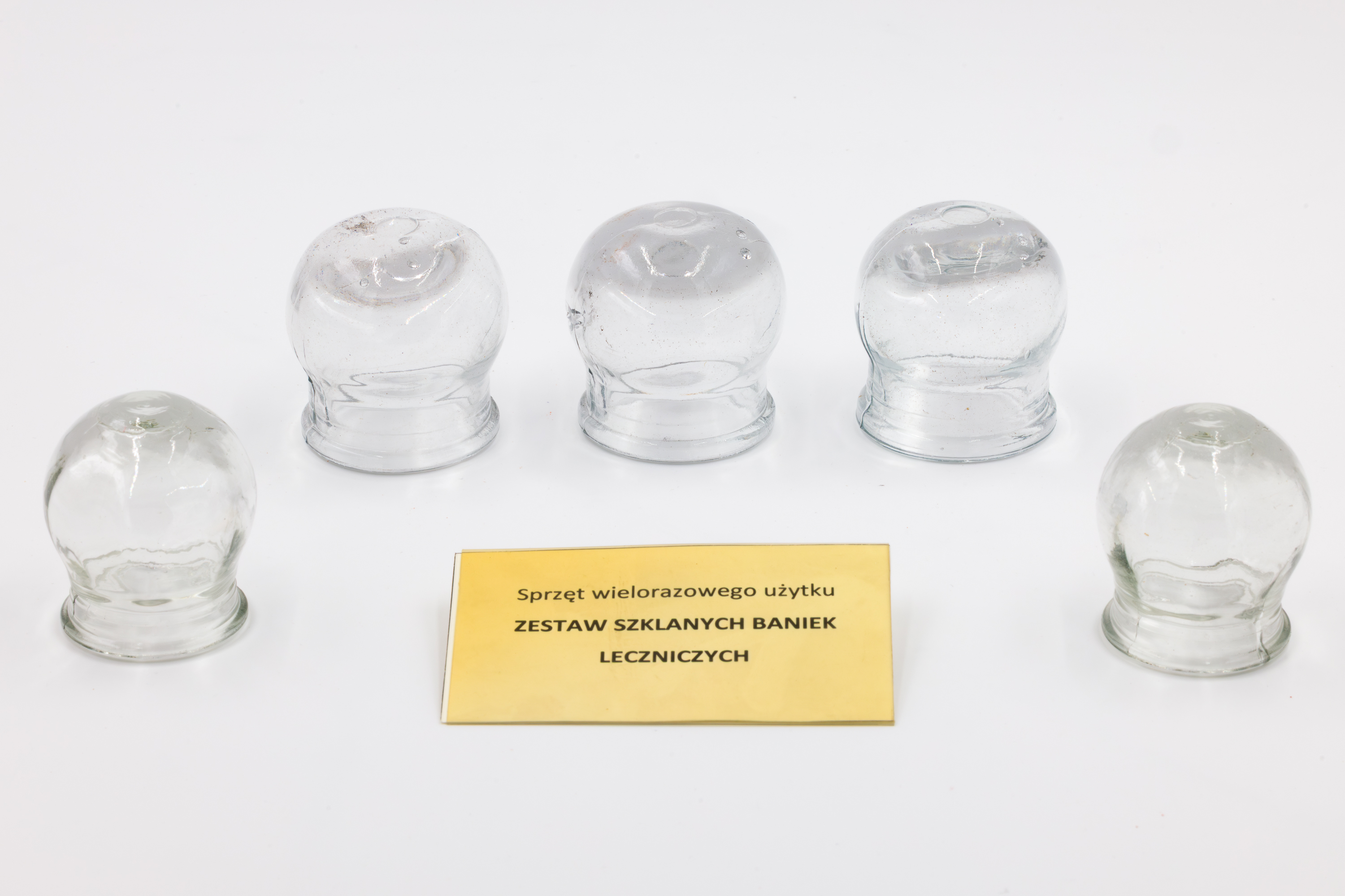 Opis: Szklane bańki to tradycyjne narzędzia lecznicze stosowane w medycynie ludowej i klasycznej szczególnie w XIX i XX w. Bańki miały zastosowanie w leczeniu infekcji górnych dróg oddechowych, przeziębień, bólu mięśniowego. W celach medycznych przykładano ogrzaną bańkę do skóry, a wewnętrzne podgrzewanie płomieniem usuwało tlen i wytwarzało podciśnienie. Powodowało to zassanie skóry i miejscowe przekrwienie, czasem drobne wylewy podskórne. Bańki miały „wyciągać chorobę” i „złą krew” z organizmu. Obecnie w Polsce w obrębie medycyny konwencjonalnej uprawnione do stawiania baniek są pielęgniarki, które zgodnie z rozporządzeniem Ministra Zdrowia mogą samodzielnie bez zlecenia lekarza wykonać ten zabieg.