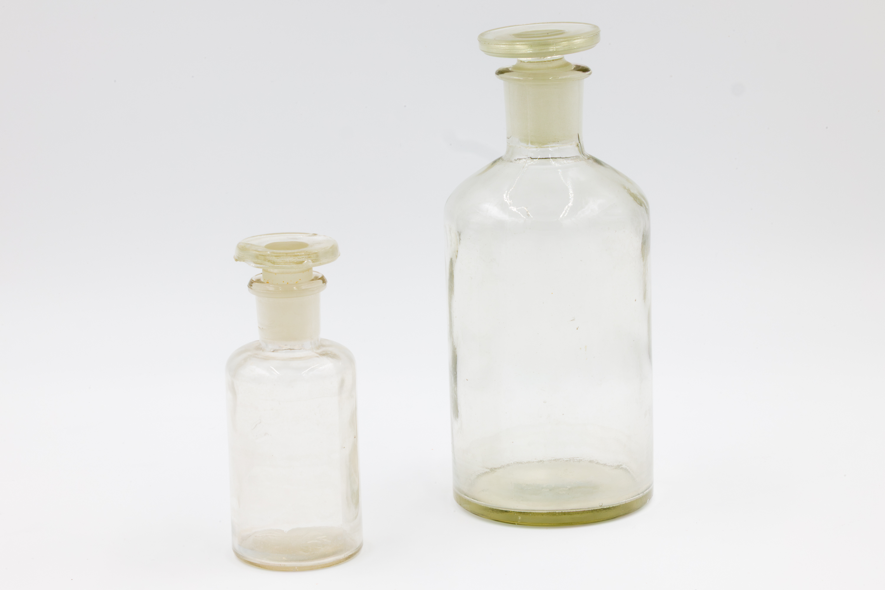 Opis: Szklane fiolki to jeden z najstarszych i najbardziej uniwersalnych sposobów przechowywania i transportowania leków, substancji chemicznych oraz próbek biologicznych. Wykonane były ze szkła borokrzemowego (np. typu Pyrex) – odporne na temperaturę i chemikalia. Stosowano je w szpitalach. W latach 50.–80. część z nich była przeznaczona do wielokrotnego użytku (po sterylizacji).