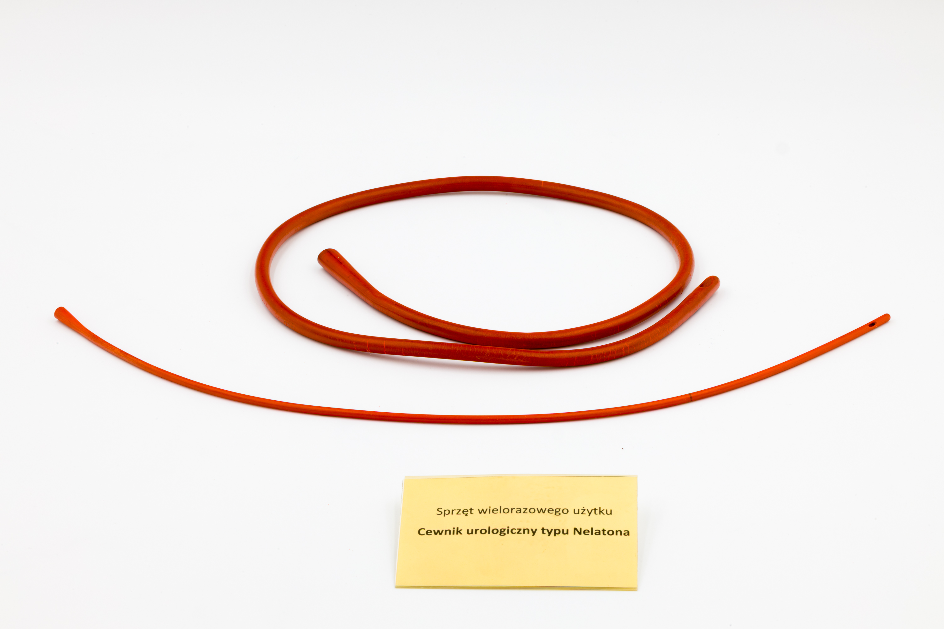 Opis: Cewnik urologiczny typu Nelatona to cewnik bez balonu stosowany do czasowego odprowadzania moczu z pęcherza. Opracowany przez Francuza Auguste'a Nelatona w XIX w. Zbudowany z giętkiego materiału (pierwotnie guma, ebonit lub lateks, obecnie głównie PVC). Zakończony zaokrągloną końcówką z jednym lub dwoma bocznymi otworami. Przeznaczone do wielokrotnego użytku: Po użyciu cewniki tego typu były myte, dezynfekowane i sterylizowane (np. przez gotowanie). Przechowywane w specjalnych pojemnikach z roztworami antyseptycznymi (np. fenol, formalina).