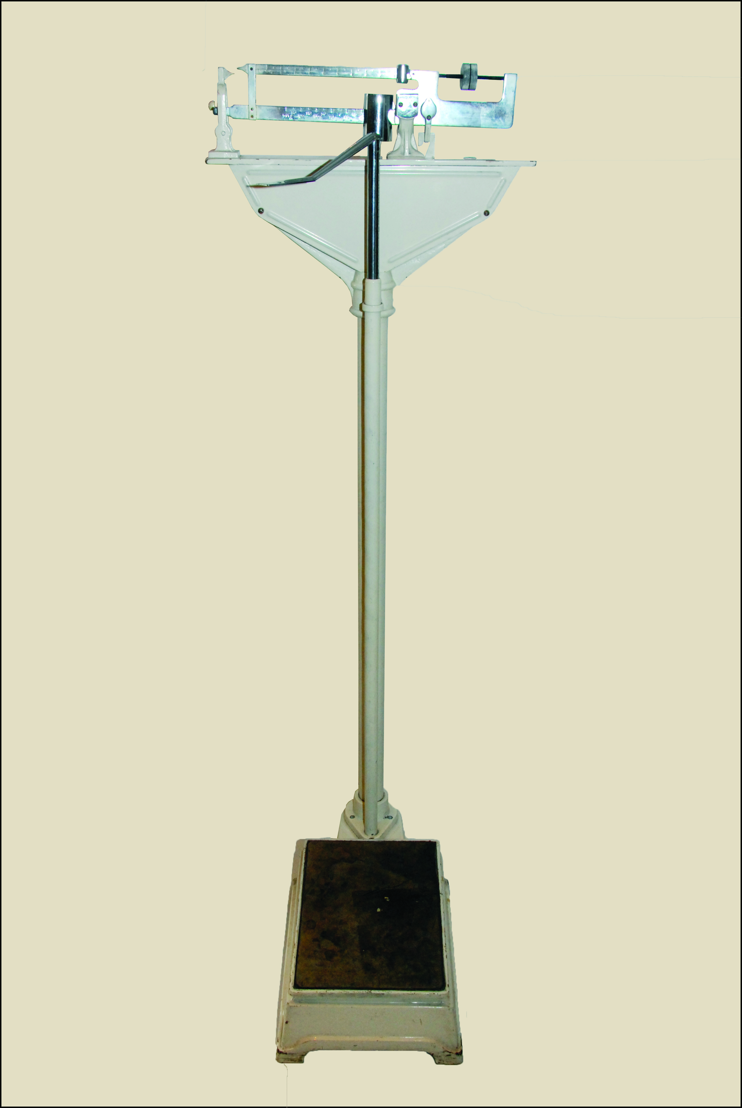 Opis: Waga lekarska wyprodukowana w 1970 roku przez Spółdzielnię Pracy Medoss w Polsce. Urządzenie służyło do pomiaru masy ciała pacjentów w gabinetach lekarskich, poradniach i szpitalach.