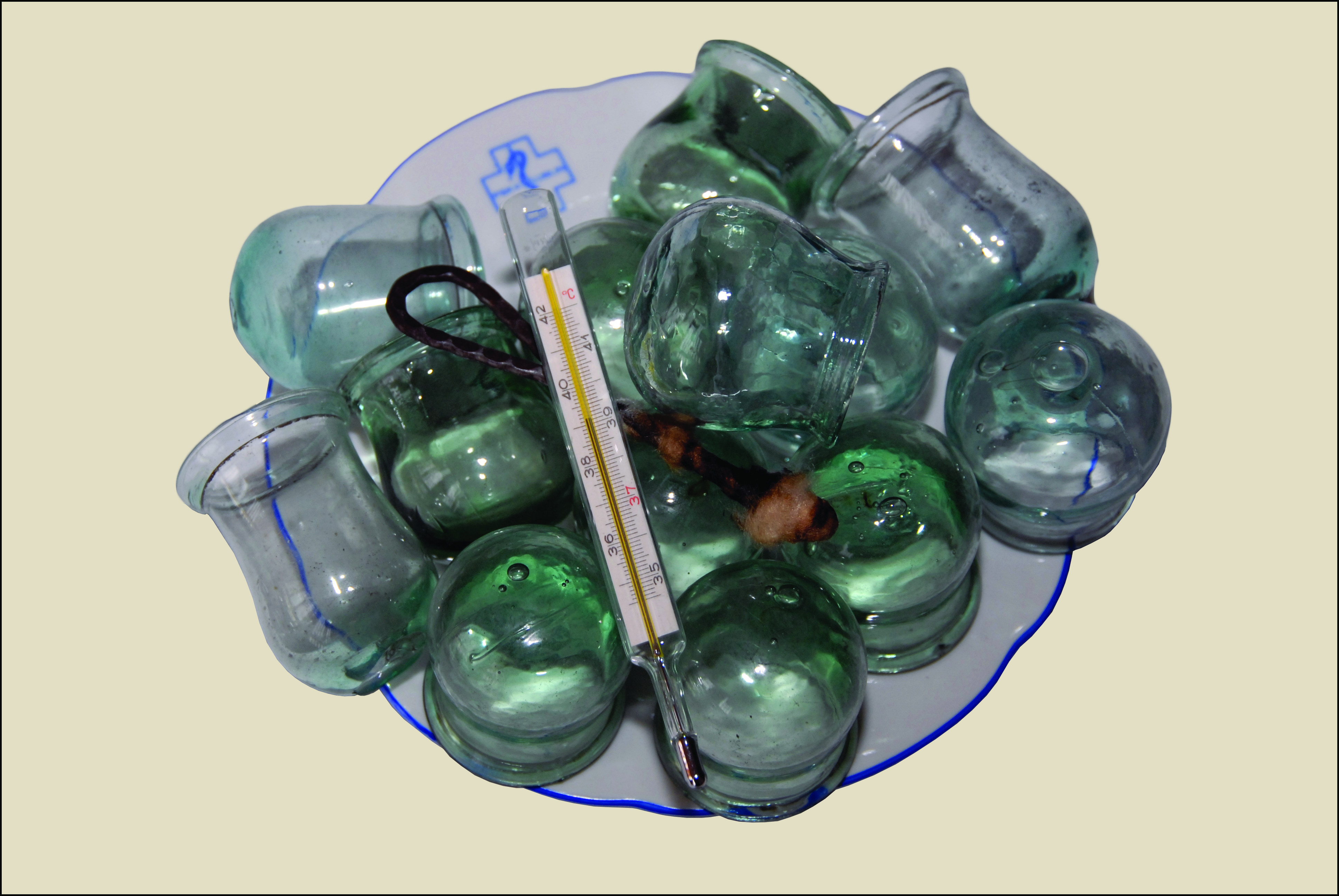 Bańki lekarskie i termometr rtęciowy, producent nieznany (lata 60. XX w.)